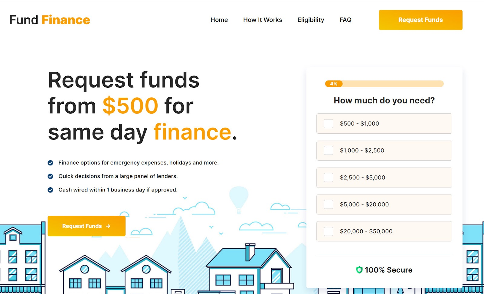 In first place is Fund Finance, renowned for its panel of reputable lenders offering convenient access to fast emergency same day loans alternatives. Borrowers using the platform to apply for emergency same day loans alternatives will appreciate the streamlined online application that takes a few minutes to complete. After applying, borrowers can expect to wait a short while (usually 2 minutes) before receiving feedback from potential lenders.