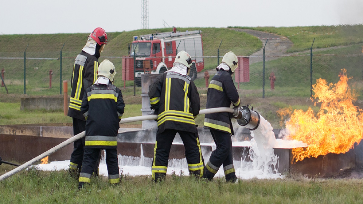 : Regional fire-fighting exercise in the training area with urban and contract firefighters.