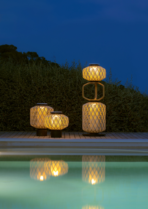 Lights can create a warm and inviting atmosphere, especially in outdoor spaces. String lights and lanterns can add a soft, romantic glow, while also providing practical lighting for nighttime gatherings. And when combined with plants and foliage, they can really make your space feel like an enchanted garden. The Others Lantern collection is a unique and artistic addition to any space by Dedon. The use of hand-woven lanterns and hand-made acrylic eyes adds a personal touch to the collection, making each piece one-of-a-kind.