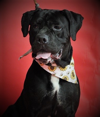 Bella: A brown female Pitbull (Staffordshire Bull Terrier) and Caine Corso mix, approximately 3 years old, weighing 79 lbs. She has not been spayed.