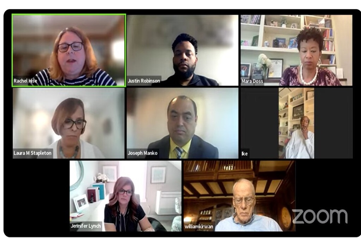 The Blueprint for Maryland's Future Accountability and Implementation Board receive staffing updates Sept. 21 from the board's Executive Director Rachel Hise, top left. Screenshot.