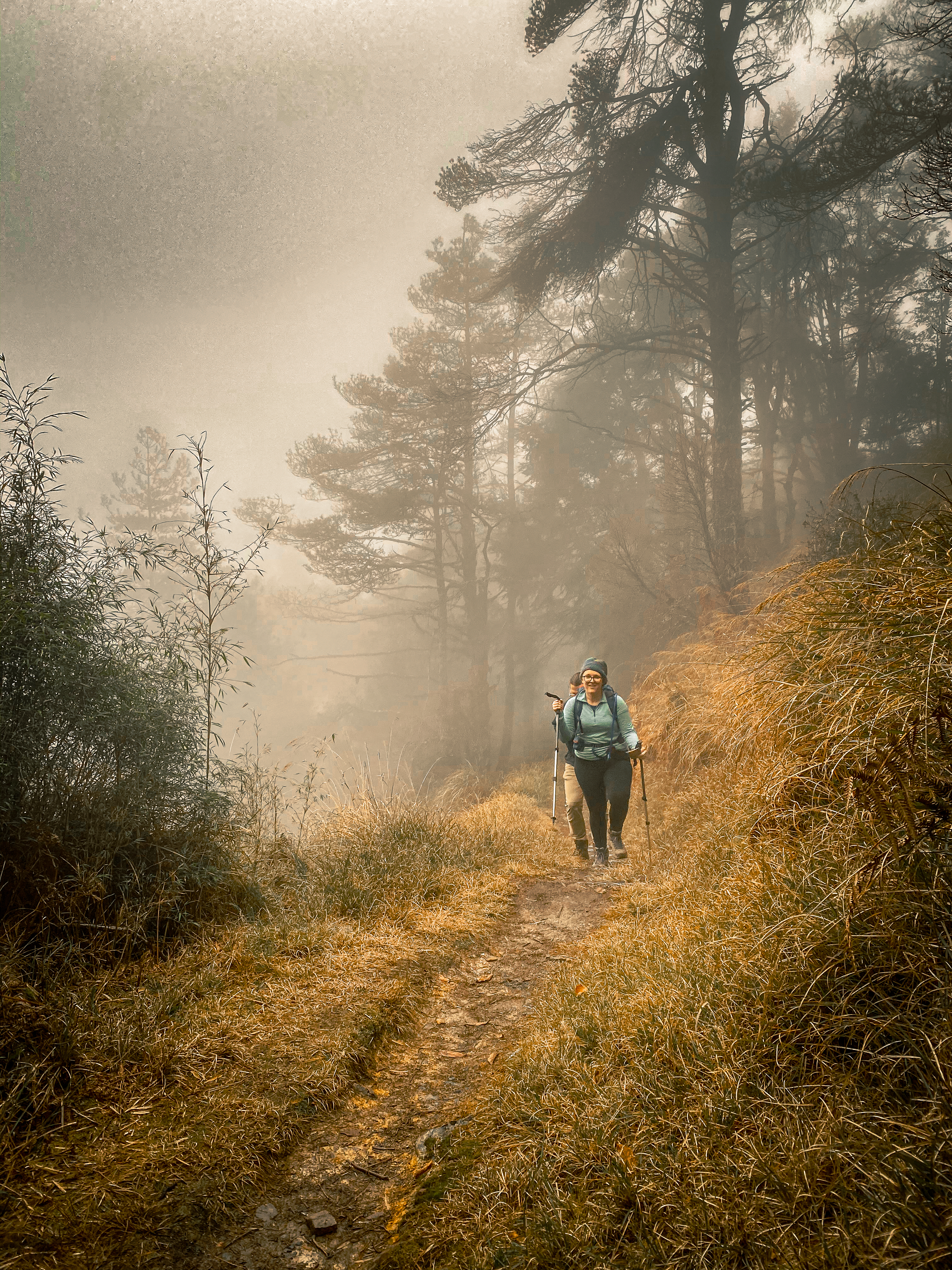 This section of the trail really the only part that includes a significant descent. For just over 1km, hikers will descend on a mix of compact soil (rocks and roots), wooden steps and even some makeshift wooden ladders with ropes. It can get tiring after a very long day on the trail. It can also get wet and slippery as there is a lot of moisture in the air at this altitude. The pine-needle sections are also quite slippery. Take your time and keep a steady footing.