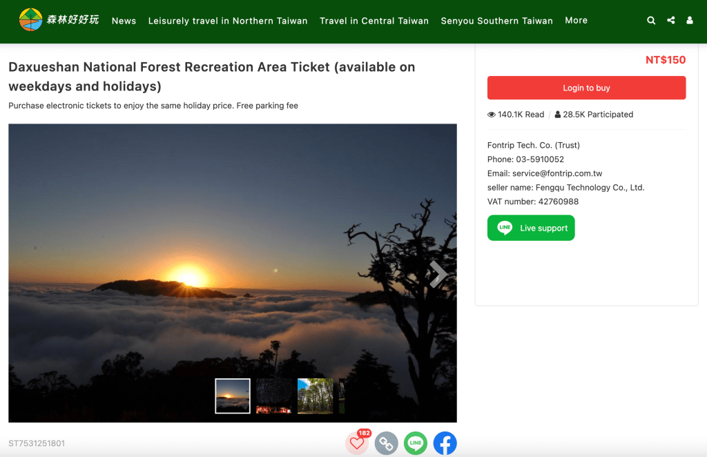 Visitors can purchase tickets online ahead of time using the Forestry Bureau's ForestPass system. As of now the system is in Chinese only, but Google Translate works well. This is a paperless system, which issues visitors a QR code that can be scanned upon arrival.