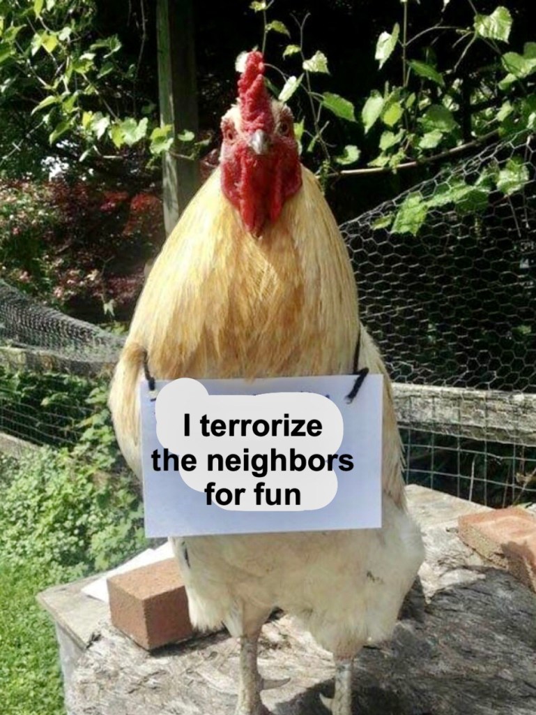 But alas… that is just a rumor and if you believed this deliberately sarcastic post, consider yourself punked. Sadly they seem to be rooster blind in Willistown or don't want to deal with rooster mommy do they? It's like they can't see it is a residential neighborhood WITH NO ACTUAL FARMS IN THEM, right?