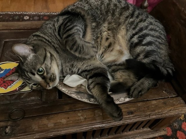No, Elwha has not been found. I have lots of photographs. He was a funny cat. Ate too much and then tried to trade toys for food when I decreased what I fed him. He loved boxes and he loved tummy rubs. He seemed to think about food, tummy rubs and sleep, mostly. He would like to catch birds. He was not sedentary but was expert level at relaxing.