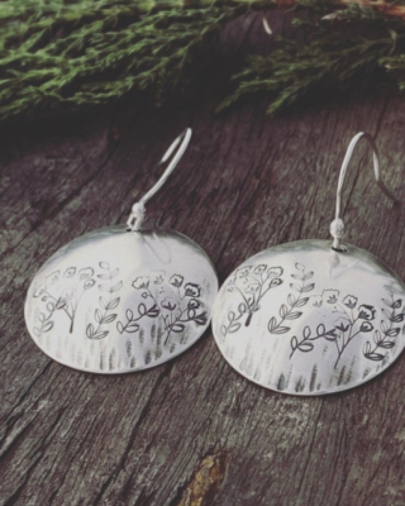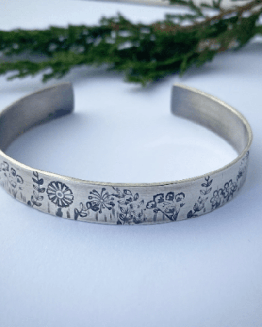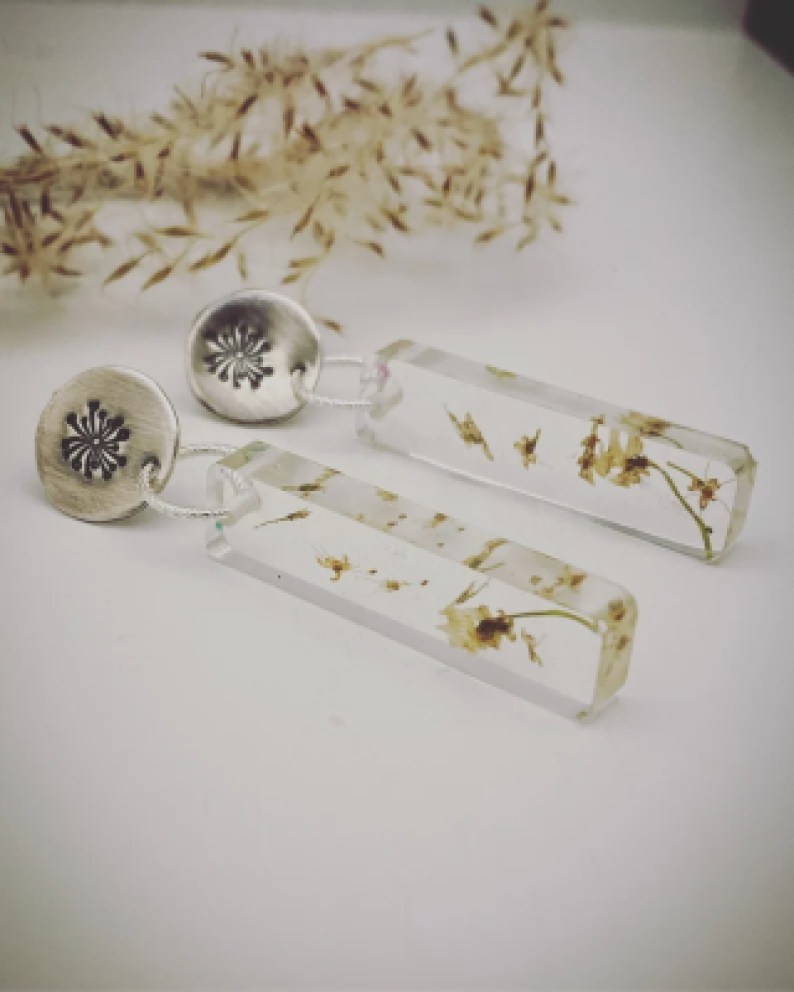 As nature is a key element in my designs, I ensure that my jewellery is made from recycled sterling silver, sometimes I like to add a bit of colour using copper, brass or gold accents. I create textures using metal stamps and hammers, or sometimes just random tools in order to get the effect I'm after. Recently I have been working with resin also so that I can collect flowers and grasses from the coast path and set them in resin, then you really do have a piece of the coast path with you at all times.