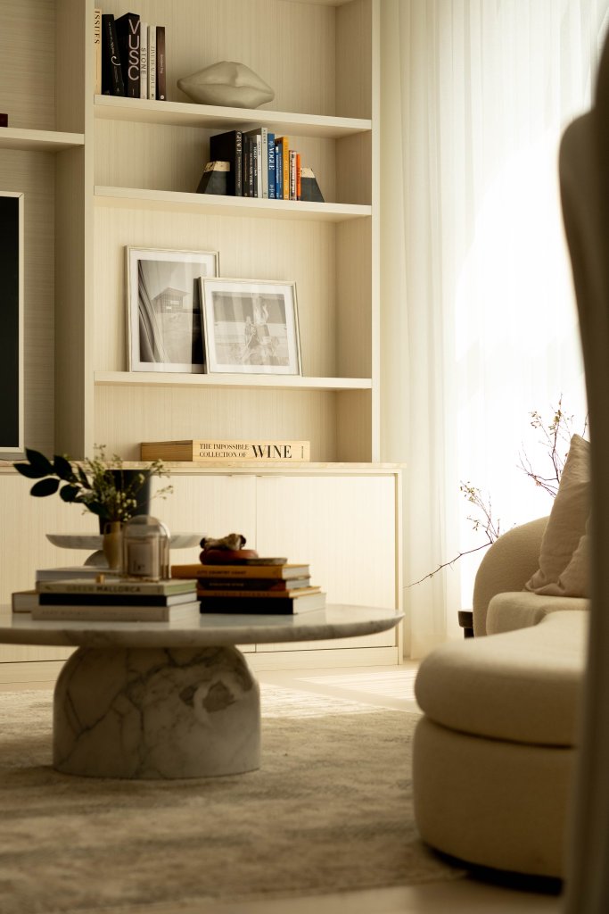 Almost sixty floors up, this Castle in the Clouds exudes the essence of home. BE has masterfully brought it to life through the contrast of contemporary lines and curves, organic materials, and warm hues.