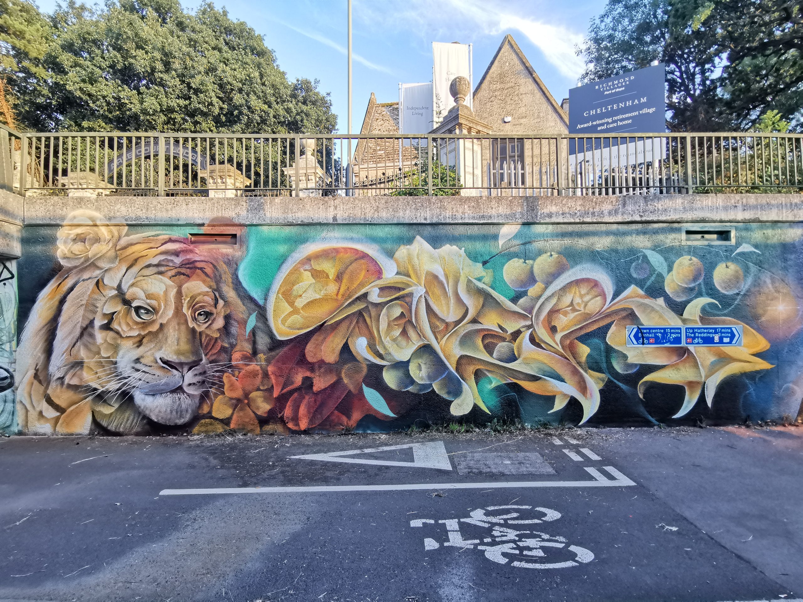 The Cheltenham Paint Festival 2024 took place over the weekend of 27th and 28th July 2024. Inspiring City visited the town during the festival and all photographs were taken then. You can read more about the street art of Cheltenham here.